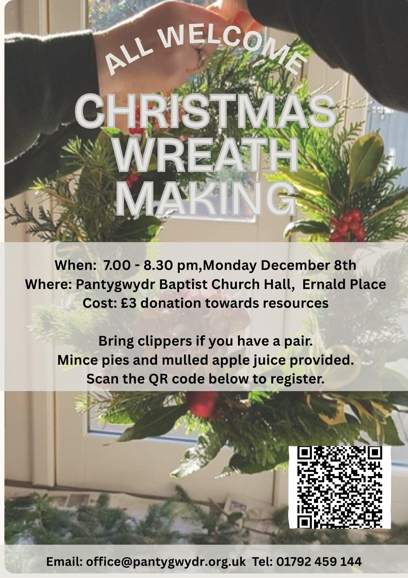 Come and join in our Wreath Making Workshop. No prior crafting experience needed! A wonderfully Christmassy and relaxed evening being creative- mince pie too!